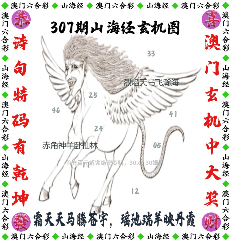 307期:【山海经玄机】开狗20 解释:烈焰天马飞瀚海,赤角神羊卧仙林解牛马猪 解料:霜天天马腾苍宇,瑶池瑞羊映丹霞解猴狗蛇 综合:牛马猴狗蛇猪 |